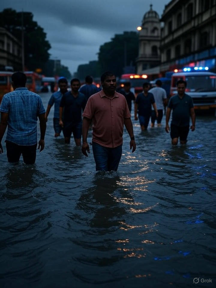 कोलकाता में कुछ ही घंटों में 300 मिलीमीटर से अधिक बारिश दर्ज की गई, जो पिछले लगभग 50 वर्षों में सितंबर महीने की सबसे भारी वर्षा है। यह बारिश इतनी तेज थी कि शहर के दक्षिणी और मध्य भागों में व्यापक बाढ़ आ गई। सड़कें पानी में डूब गईं, घरों में पानी भर गया और सामान्य जीवन ठप हो गया। मौसम विभाग के अनुसार, यह कम दबाव का क्षेत्र बंगाल की खाड़ी से उठा था, जिसने पूरे शहर को अपनी चपेट में ले लिया।